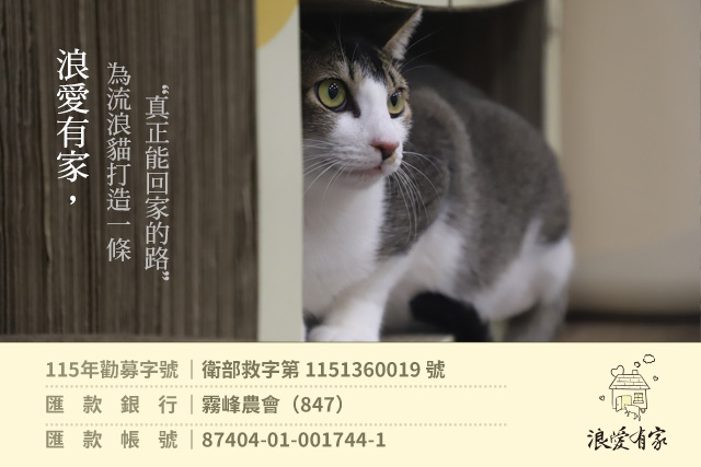 2026 年 1 月 30 日 2026 年 1 月 30 日浪愛有家,為流浪貓打造一條真正能回家的路「浪愛有家中途貓協會」不是只是在做救援,而是希望用長期、可驗證、可複製的方式,真正解決流浪貓數量不斷循環的問題。 我們透過 親訓與社會化訓練,讓原本在街頭生活、 […]